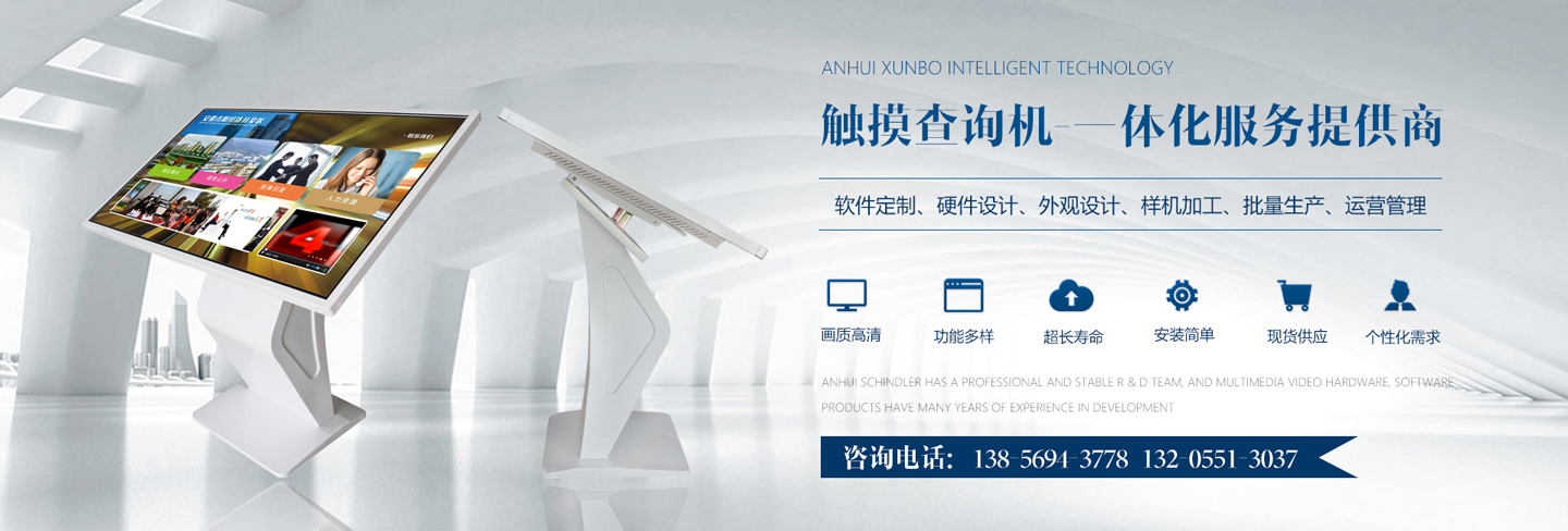 迅博智能 位于中國科教城---合肥市,和經(jīng)濟(jì)開發(fā)區(qū)與高新區(qū)毗鄰,地址合肥市肥西縣湯口路與皋城路交口人民萬福產(chǎn)業(yè)園一期12棟東側(cè),是一家IT領(lǐng)域的高新技術(shù)企業(yè),全心全意服務(wù)于信息化建設(shè),做專業(yè)的信息化提供商,全力打造信息時代新模式。 迅博智能 主要從事觸摸屏、觸摸顯示器、OLED柔性觸摸屏、觸摸查詢一體機(jī)系列產(chǎn)品及觸摸顯示互動體驗(yàn)軟硬件產(chǎn)品;智能排隊(duì)叫號、網(wǎng)上預(yù)約排隊(duì)叫號、安康碼皖事通取號系統(tǒng);曲面屏、OLED 屏幕、柔性屏、LCD液晶大屏拼接系統(tǒng);落地式、壁掛式單機(jī)版網(wǎng)絡(luò)版室內(nèi)外廣告機(jī)及數(shù)字標(biāo)牌廣告信息發(fā)布系統(tǒng);室內(nèi)外LED電子格柵透明屏、單雙色、全彩電子大屏;各類辦事營業(yè)廳:公積金...